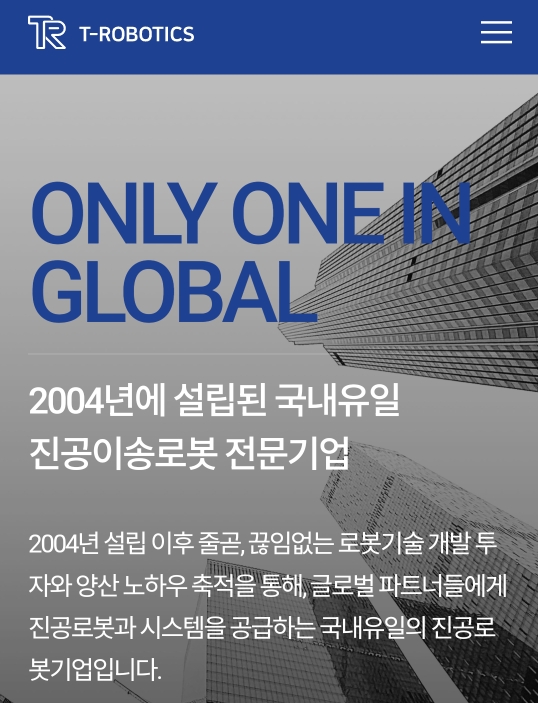 티로보틱스는 2004년 설립된 국내 유일의 진공 이송 로봇 및 시스템 전문 기업입니다. 반도체,