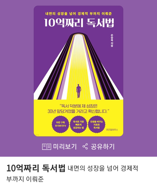 ● 10억짜리 독서법: https://www.aladin.co.kr/m/mproduct.aspx?ItemId=324493620