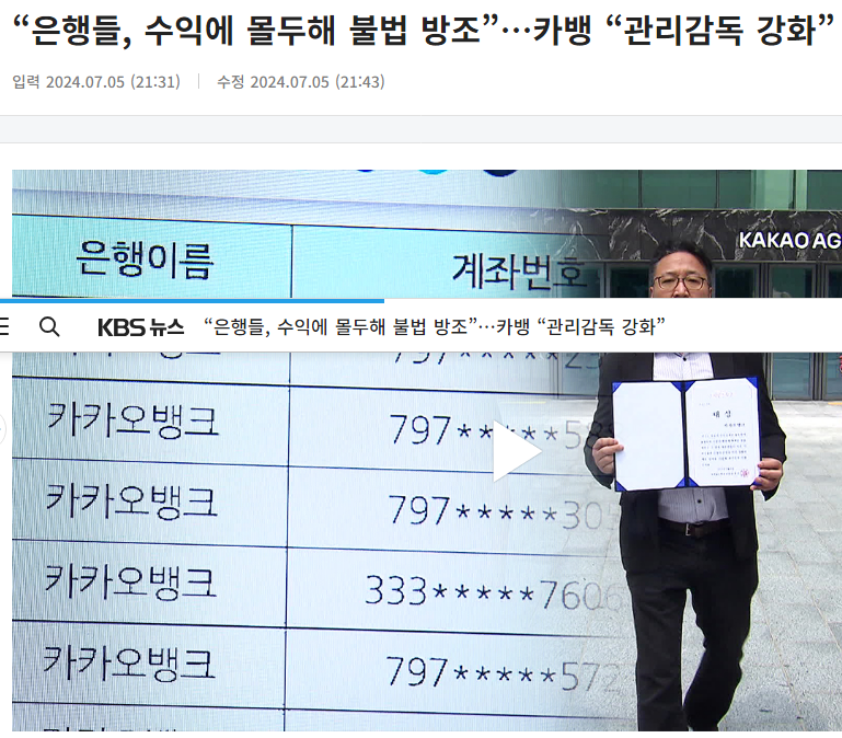- 카카오뱅크: 불법 의심 계좌 감시 및 개설 요건 강화 조치 이미 취하고 있음, 앞으로 더 강화할 방침