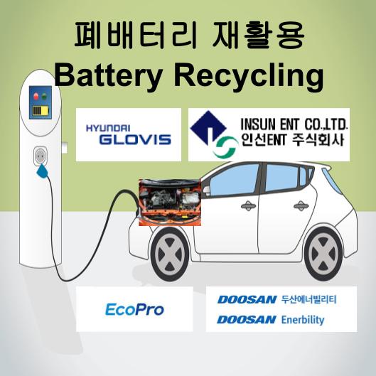 전쟁으로 2차전지 배터리 원료인 리튬 니켈 망간 등의 금속류 가격이 폭등하고, 전기차 수요가 폭발적으로 증가함에 따라 앞으로 꾸준하게 생산될 폐배터리 재활용에 대한 니즈가 폭발하고 있다. 2차전지를 기반으로 하는 전기차 개발 당시 부터 매우 고가인 2차전지 사용 후 그대로 폐기했을 때 심각한 경제적 손실이 야기될 것이며, 동시에 한정적인 금속 자원 때문에 전기차가 지속가능한 수송 유틸리티로서 인정받지 못했던 것을 감안하면, 빠른 2차전지 재활용 사업 활성화는 당연한 것으로 보인다. 국내에서는 현대글로비스, 인선이엔티, 에코프로 그리고 두산에너빌리티가 관련 사업을 준비하고 있어 주가 상승이 기대된다.