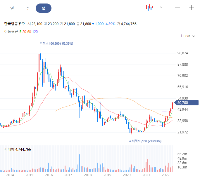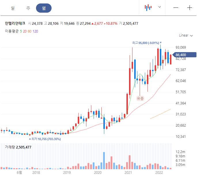 월봉상 이 주식은 2019년 1만 원대가 9만 원대까지 9배 올랐다. 3년 만에 9배 상승? 더 오를까?