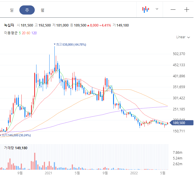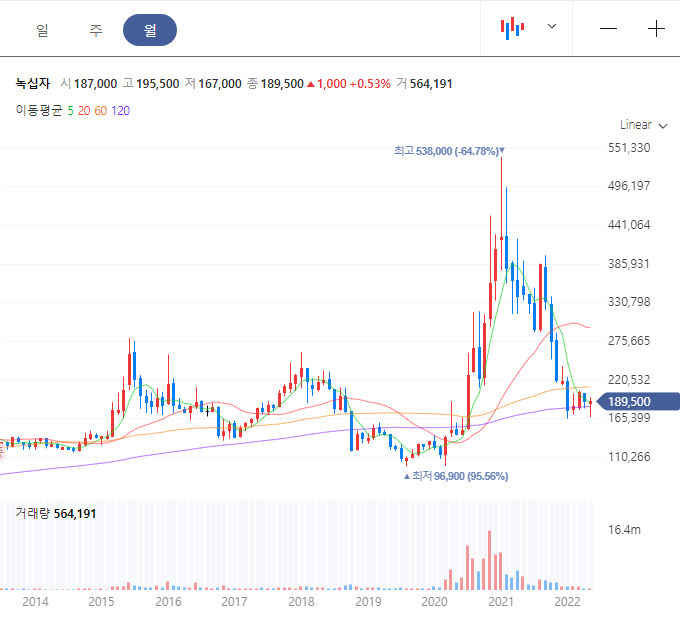 녹십자 월봉은 이제 다시 오를 준비 구간이다. 장기 성장하는 회사라면 이번에 다시 반등할 것이다. 얼마나 오를 수 있을지는 알 수 없으나, 이 회사 주식의 성장을 기대해 본다.