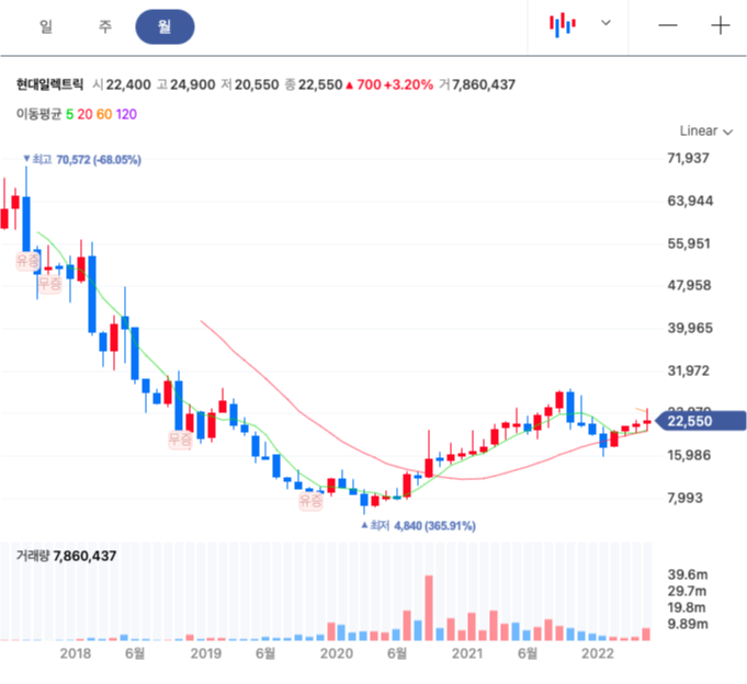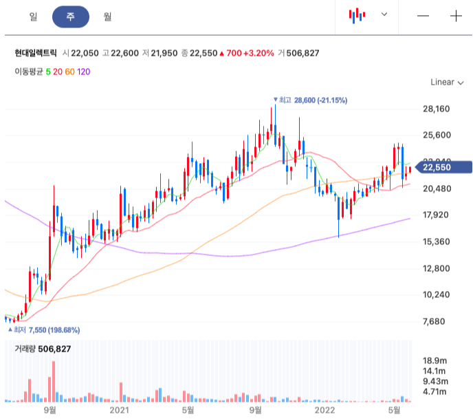 현대중공업 그룹은 조선업이 길고 긴 불황 속에 있을 때 매우 흔들렸다. 한진해운이 망하여 큰 고객사도 잃었고, 조선업황이 개선될 기미가 보이지 않는 상황에서 정치인인 그룹 총수의 추락한 인기는 현대중공업 그룹을 힘들게 했다. 고육지책으로 현대중공업 그룹은 계열 분리의 방법을 택했다. 그중 전기기기 영역을 담당하던 사업부를 분리하여 만든 회사가 현대일렉트릭이다. 이 회사도 국내 3대 전력회사 중 하나다. 국가 기간산업을 만들 때 3대 전력회사는 1/3의 확률로 입찰에 참여한다. 물론 외국계 기업도 참여하지만, 자국 전력 기기업체가 메리트가 있다. 기술 수준도 높아 수출 물량도 많은 현대일렉트릭은 미국을 비롯하여 아시아 남미 중국 등에서 큰 성과를 거두고 있다. 대우조선해양 인수가 무산되면서 대형 선박용 변압기 사업 확장이 다소 지연된 측면이 있으나, 현대미포조선, 현대중공업, 한국조선해양 등 현대중공업그룹 내 선박 제조 회사가 많아 전력기기 사업 성장이 크게 기대된다.