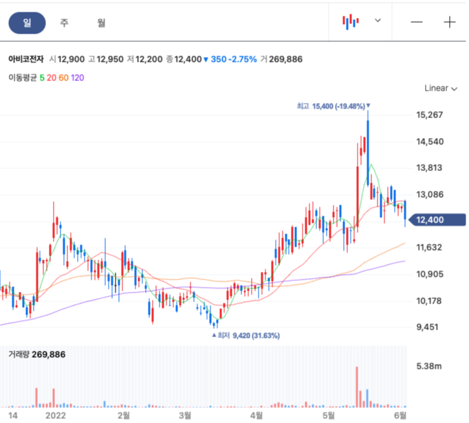 아비코전자 주봉을 보니 작년 9월부터 거의 3배가 올랐다. DDR5가 처음 이슈가 된 후 꾸준히 이슈가 될때마다 모멘텀으로 작용되었다.