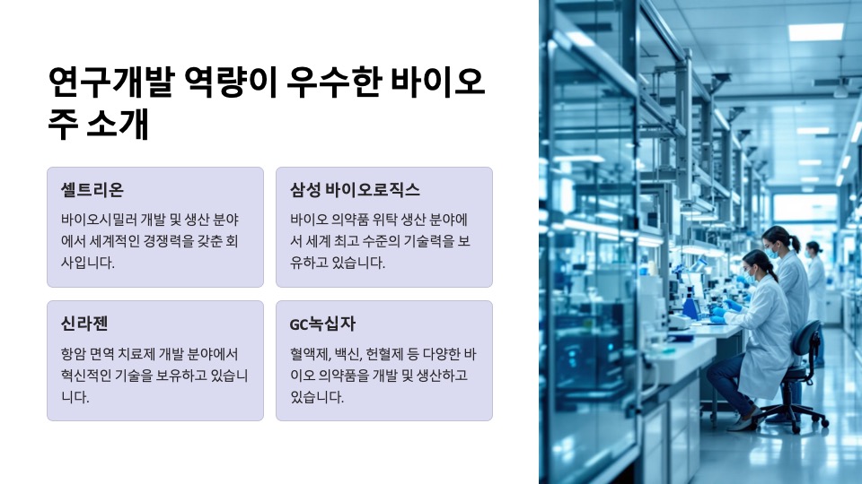 바이오주는 높은 성장성과 함께 높은 리스크를 가진 매력적인 투자처입니다. 한국은 세계적인 수준의 바이오 기술력을 보유하고 있으며, 정부의 적극적인 지원과 함께 바이오 산업은 빠르게 성장하고 있습니다. 하지만, 바이오주의 특성상 투자에 유의해야 할 점들이 많습니다. 성공적인 바이오주 투자를 위해 다음 가이드라인을 참고하세요.