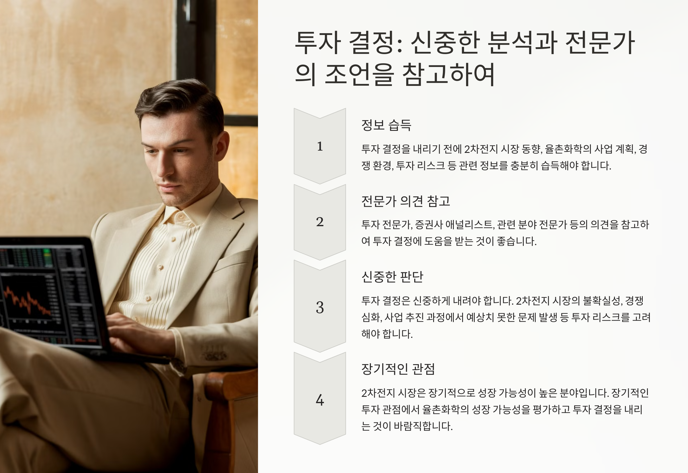 율촌화학의 주가 상승은 2차전지 소재 사업 진출에 대한 기대감이 반영된 결과입니다. 하지만 2차전지 시장은 경쟁이 치열하며, 율촌화학이 성공적으로 사업을 안착시킬 수 있을지는 미지수입니다. 따라서 투자 결정을 내리기 전에 관련 정보를 충분히 파악하고, 전문가의 조언을 참고하는 것이 중요합니다.
