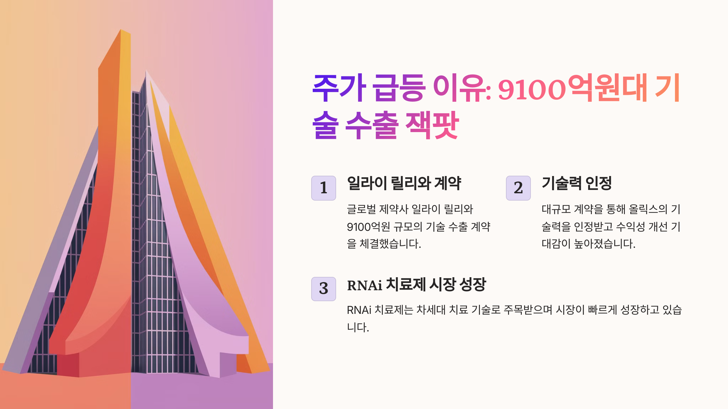 올릭스 주가 폭등! 9100억원대 기술 수출 잭팟 터졌나? - 숨겨진 이유와 투자 전략 분석