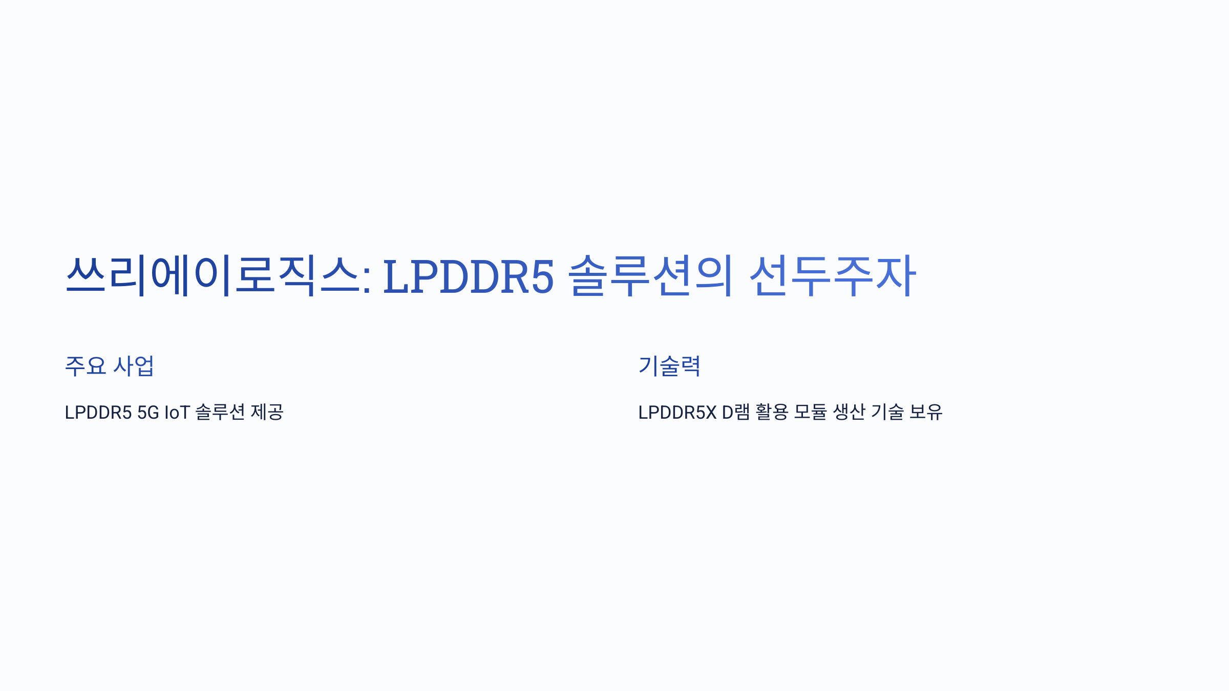 - 쓰리에이로직스: LPDDR5 5G IoT 솔루션을 제공하는 기업으로, SOCAMM에 사용되는 LPDDR5X D램을 활용한 모듈 생산에 필요한 기술력을 보유하고 있습니다 .