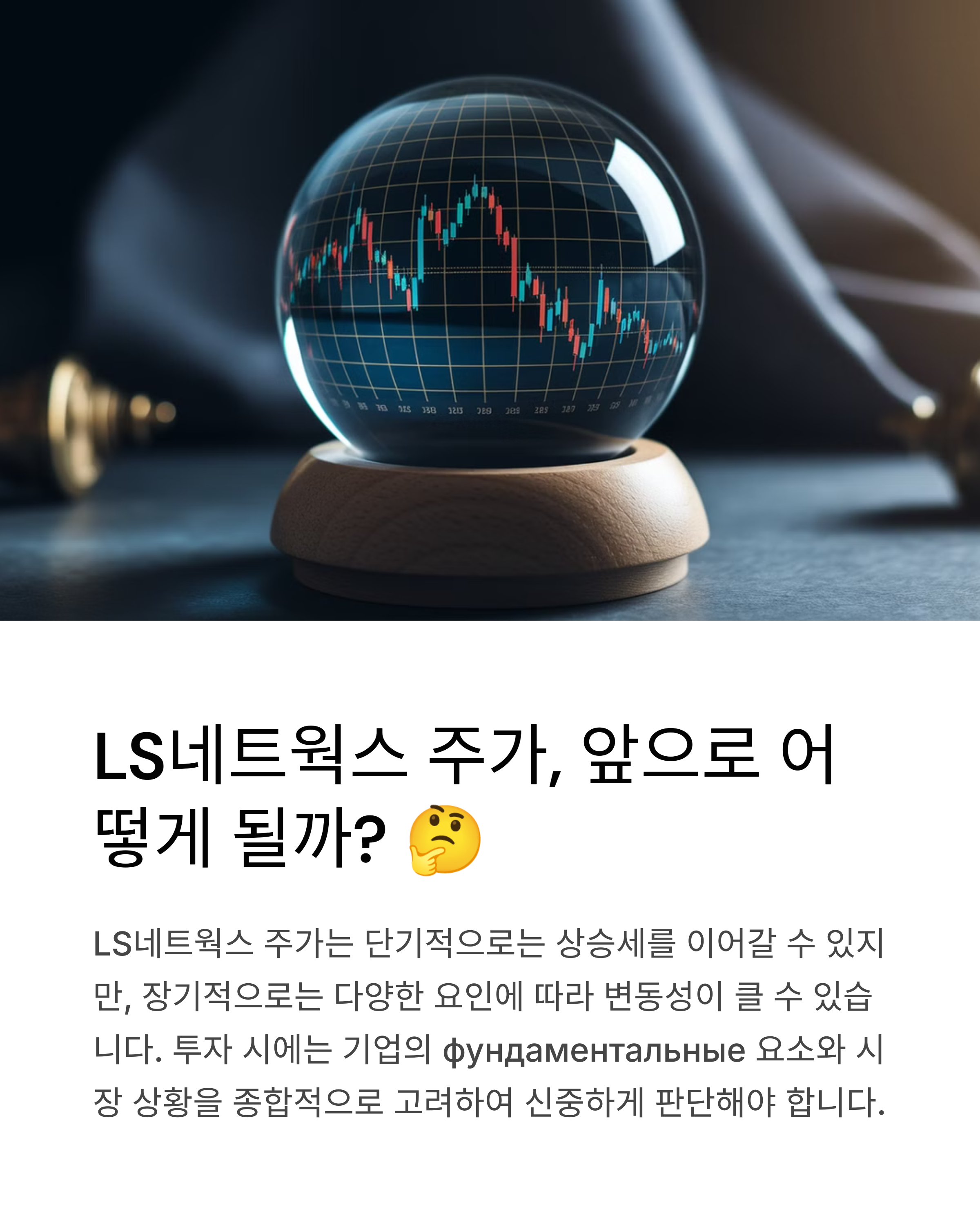 따라서 LS네트웍스 주가는 단기적으로는 상승세를 이어갈 수 있지만, 장기적으로는 다양한 요인에 따라 변동성이 클 수 있습니다. 투자 시에는 기업의 фундаментальные 요소와 시장 상황을 종합적으로 고려하여 신중하게 판단해야 합니다.