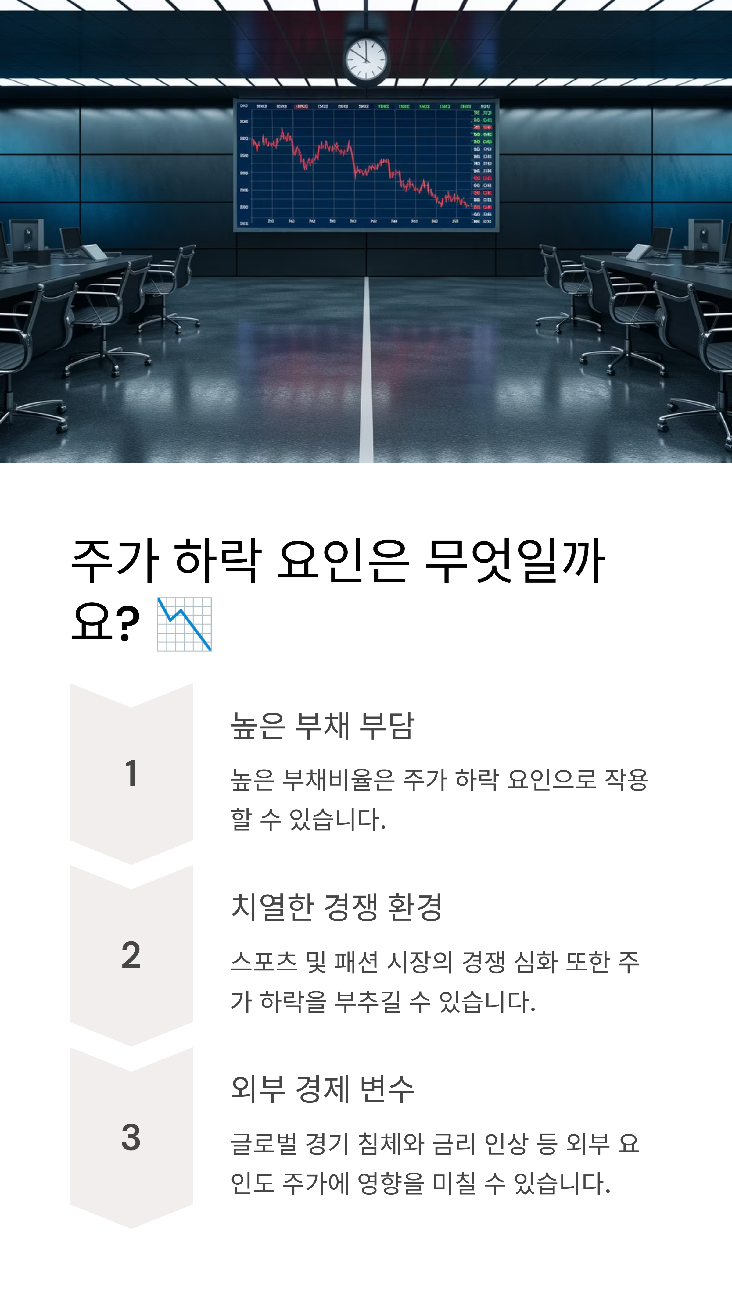 - 경쟁 심화: 스포츠 및 패션 시장의 경쟁 심화로 인해 수익성 확보에 어려움을 겪고 있습니다.