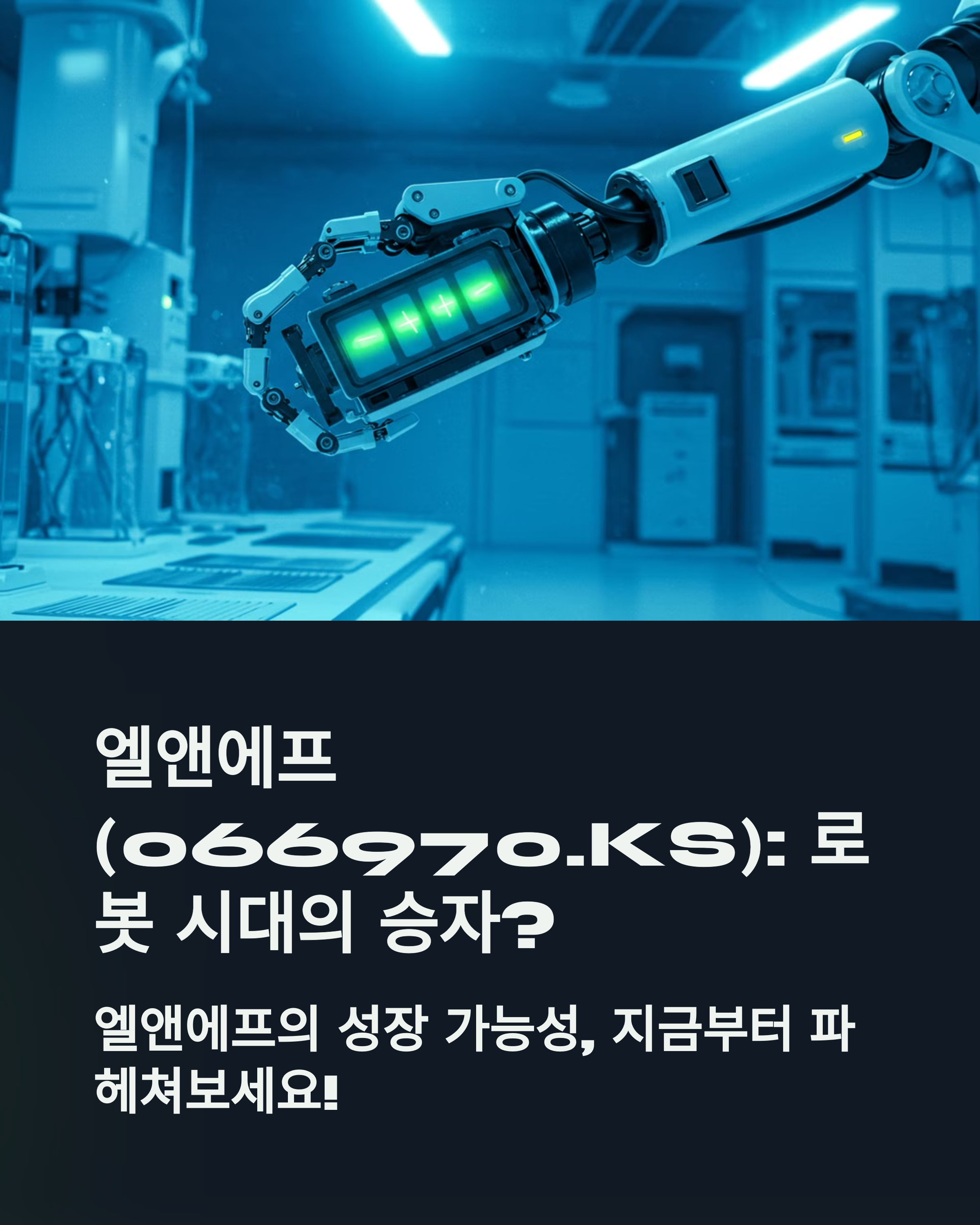 - 엘앤에프 (066970.KS): 엘앤에프는 양극활물질을 전문적으로 생산하는 기업으로, NCA, NCM 등 고성능 배터리 양극재 시장에서 선도적인 위치를 점하고 있습니다. 특히, 로봇용 배터리에 요구되는 고에너지 밀도, 장수명 특성을 만족하는 양극재 기술을 보유하고 있어 로봇 배터리 시장 확대의 직접적인 수혜가 예상됩니다. 엘앤에프는 삼성SDI, LG에너지솔루션 등 국내 주요 배터리 제조사들과 협력 관계를 맺고 있으며, 삼성SDI-현대차 기아 연합에 핵심적인 양극재를 공급할 가능성이 높습니다. 최근 증권가 리포트에 따르면 엘앤에프는 차세대 배터리 소재 개발에도 적극적으로 투자하며 기술 경쟁력을 강화하고 있으며, 로봇 시장뿐 아니라 전기차, 에너지 저장 시스템 (ESS) 등 다양한 분야에서 성장 잠재력이 높은 기업으로 평가받고 있습니다.