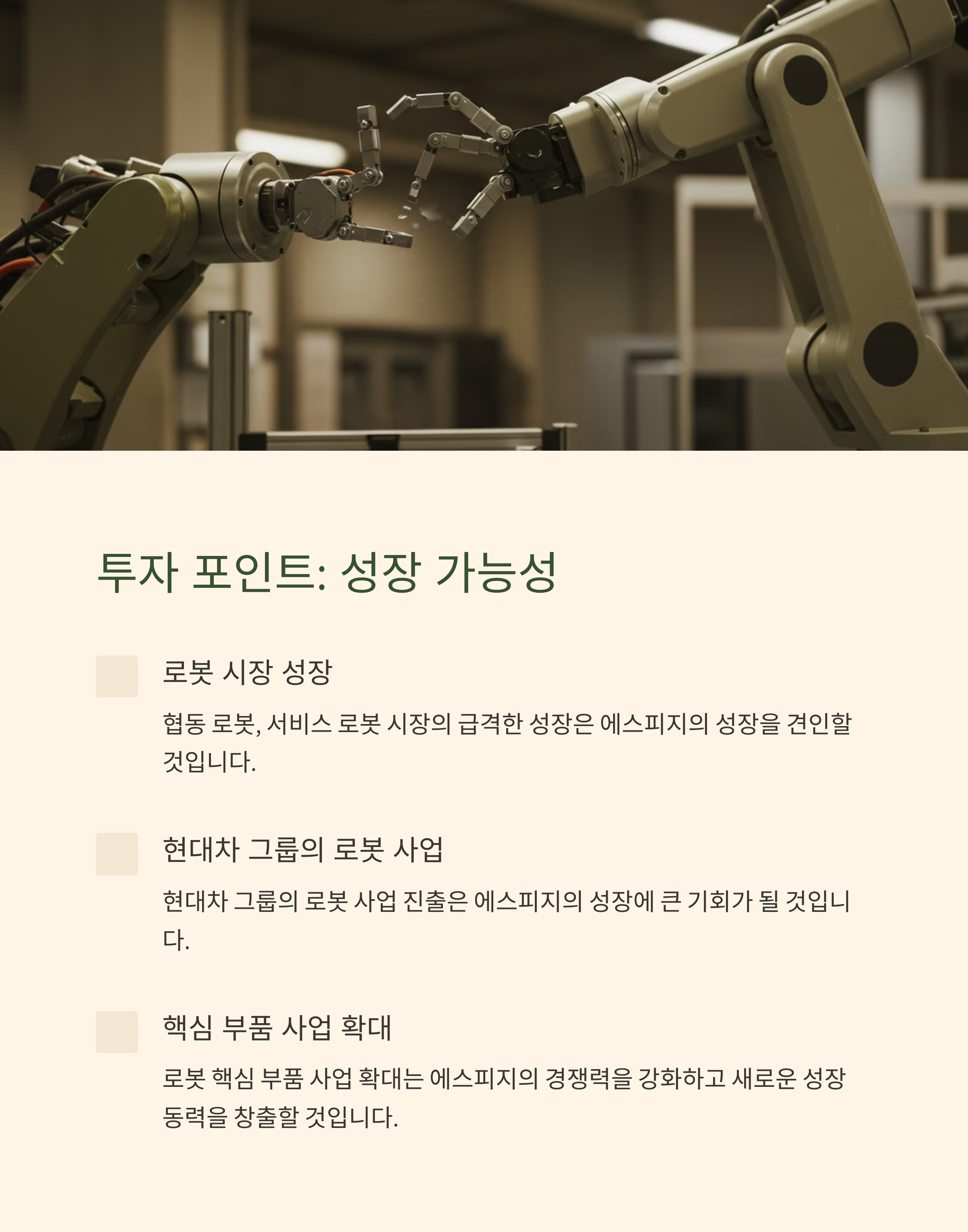 2. 로봇 부품 및 시스템 통합 관련 기업: 에스피지