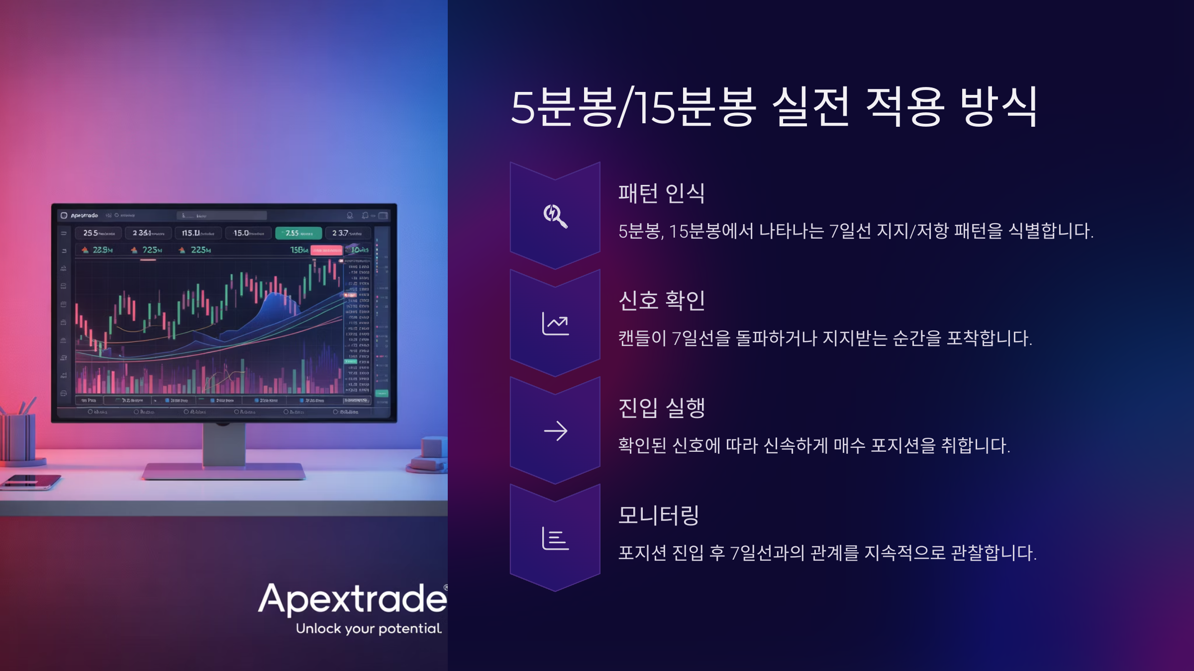 - 분봉(5분, 15분)에서 7일선 활용한 단타·스윙 매매