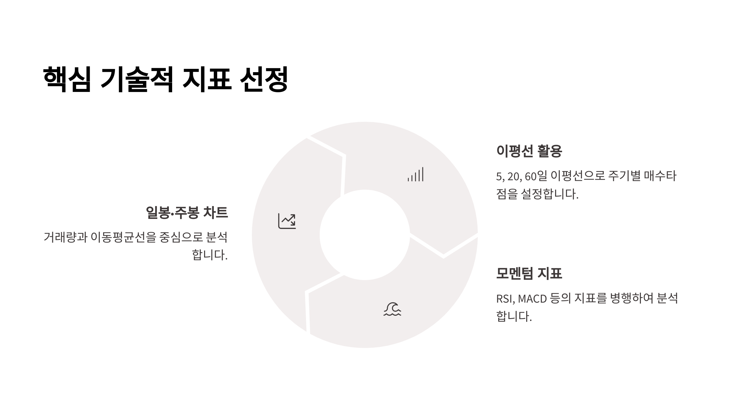 - RSI, MACD 등의 모멘텀 지표 병행 분석