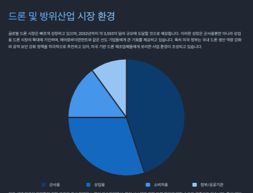 물류, 농업, 건설, 에너지 등 다양한 민간 분야에서의 드론 활용도가 확대되고 있어, 상업용 드론 시장의 성장 가능성이 높아지고 있습니다.