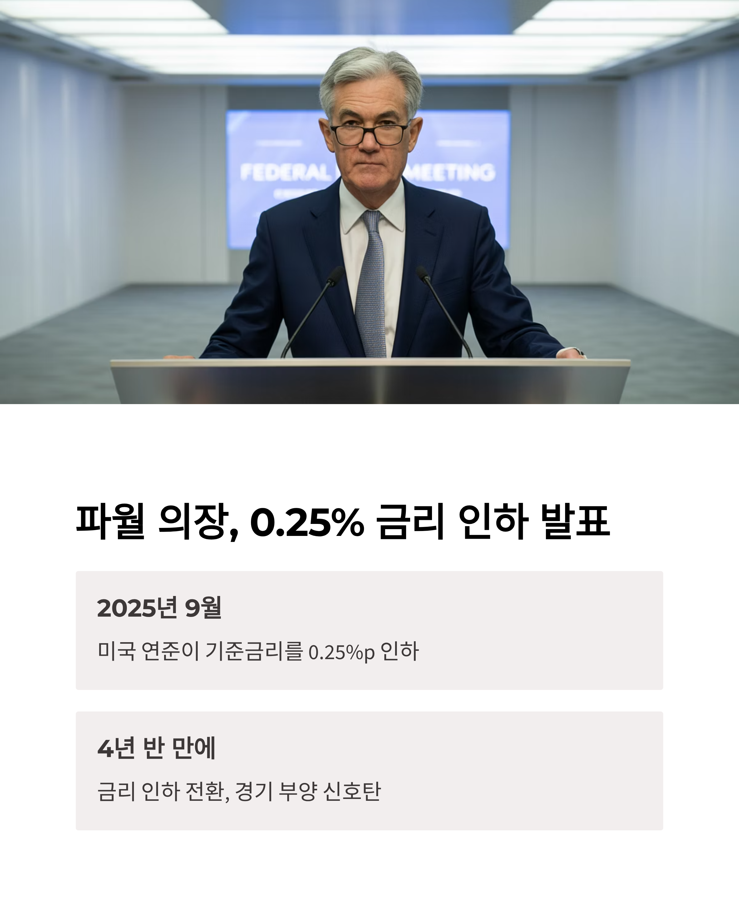 - 2025년 9월, 미국 연준이 기준금리를 0.25%p 인하