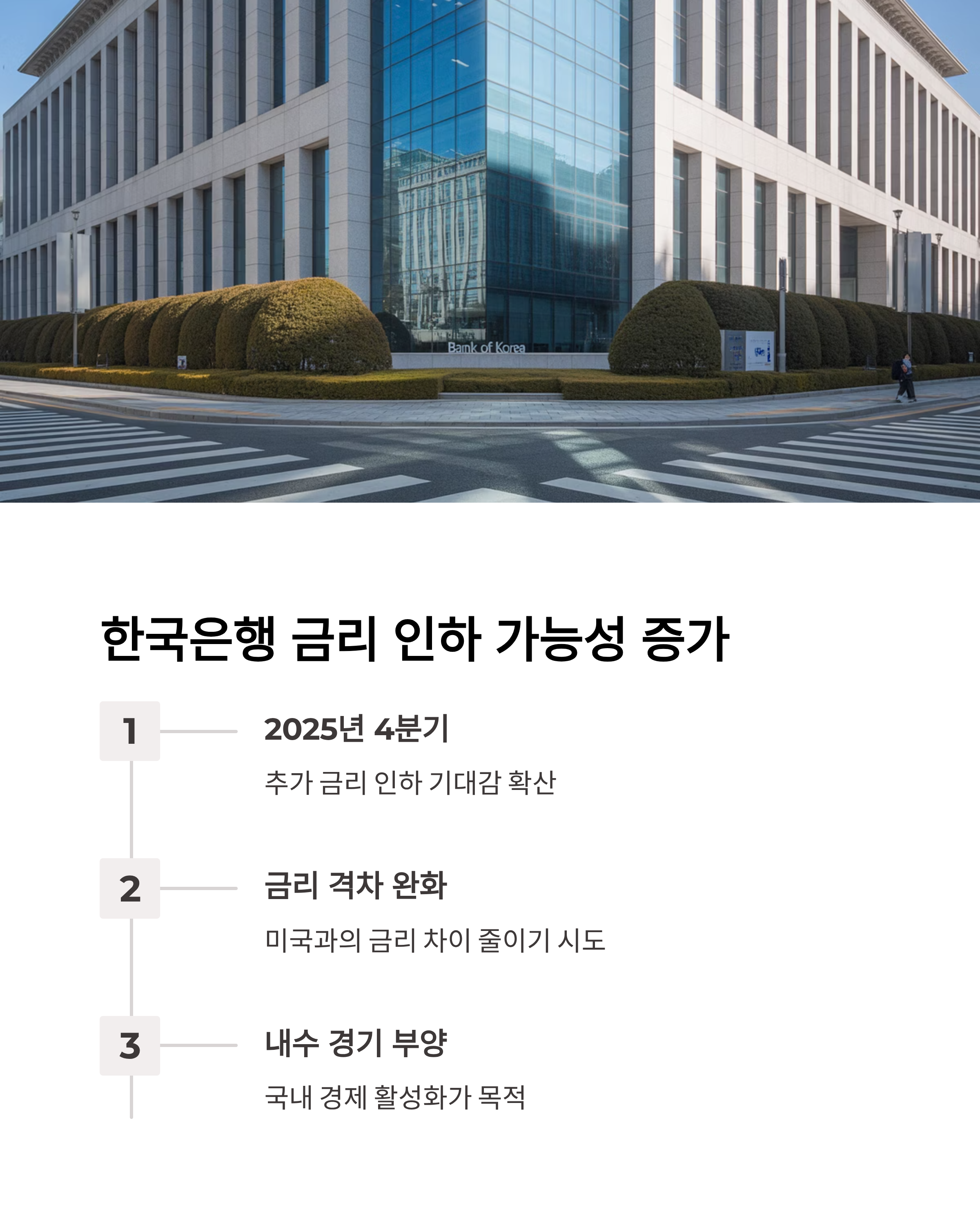 - 한국은행, 2025년 4분기 추가 금리 인하 기대감 확산