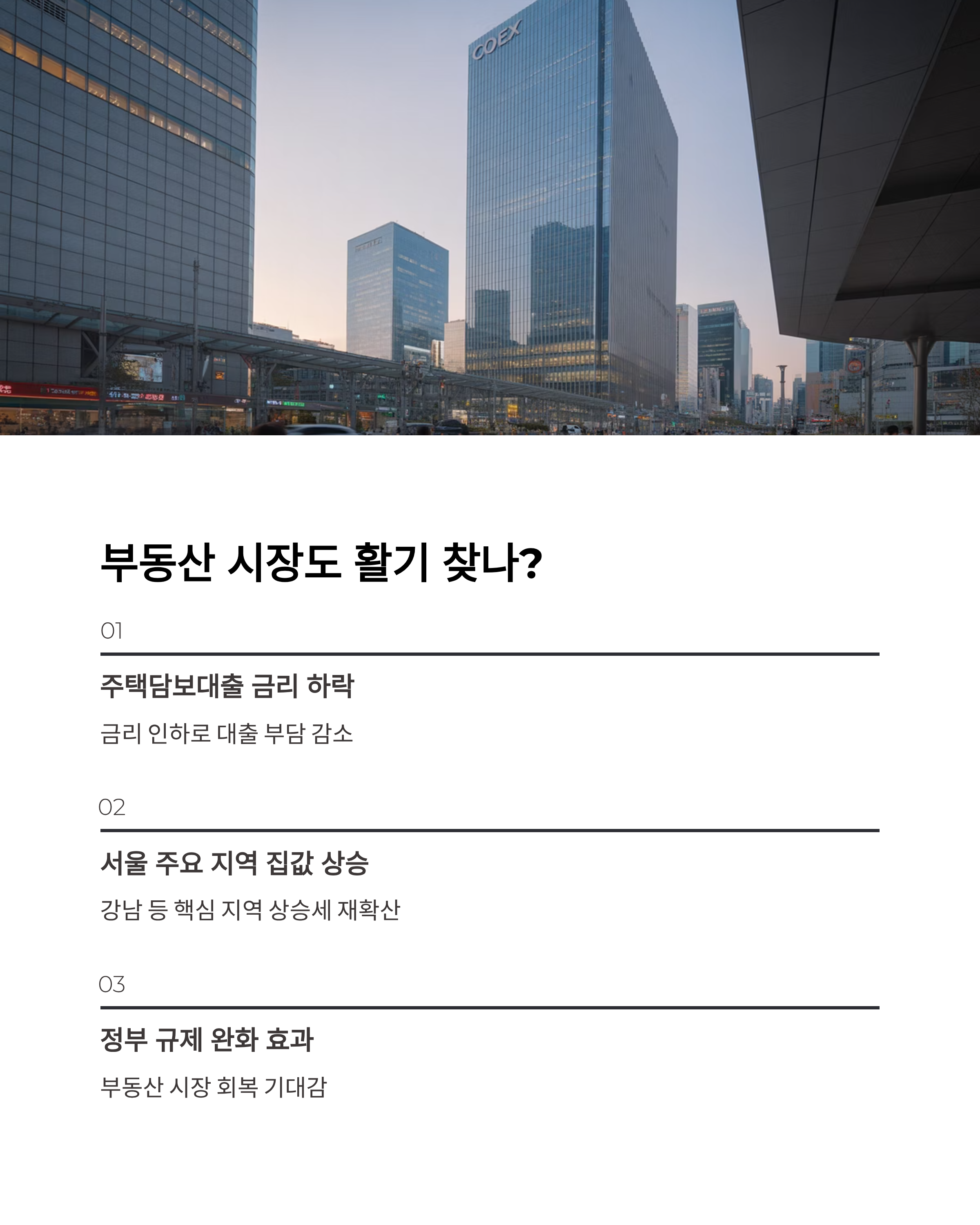 - 정부 규제 완화와 맞물려 부동산 시장 회복 기대