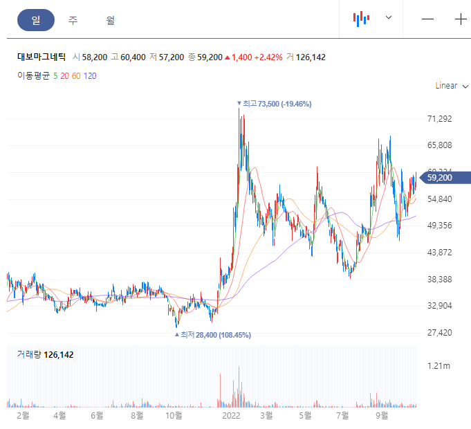 대보마그네틱은 전고점을 뚫을 것으로 보인다.
