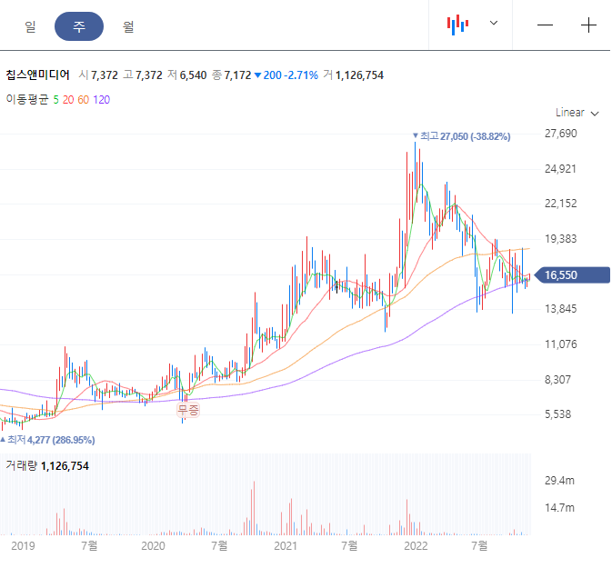 - 칩스앤미디어의 장점은 매출이 있다는 점. 로얄티 등으로 순이익이 18억원임.
