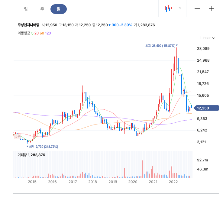 28000원까지 주가가 올랐던 경험 때문에 지금 불나방처럼 들어가는 사람들도 있을 것 같다.