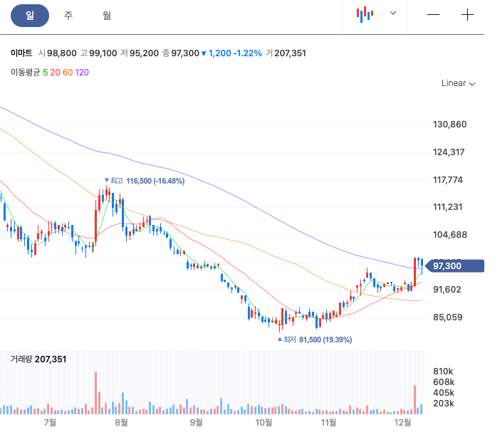 이마트 상승세가 대단하다.