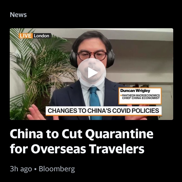 런던TV는 중국이 해외여행객의 코로나 검사를 완화했다는 뉴스를 전했다.