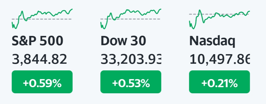 미국의 선진 500개 기업의 지수를 나타내는 S&P500은 +0.59% 상승했고,
