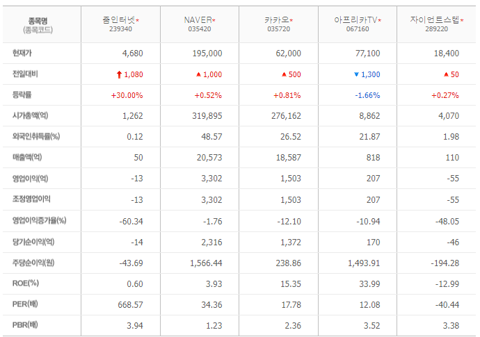 네이버, 카카오 오르자 줌인터넷은 날았다.