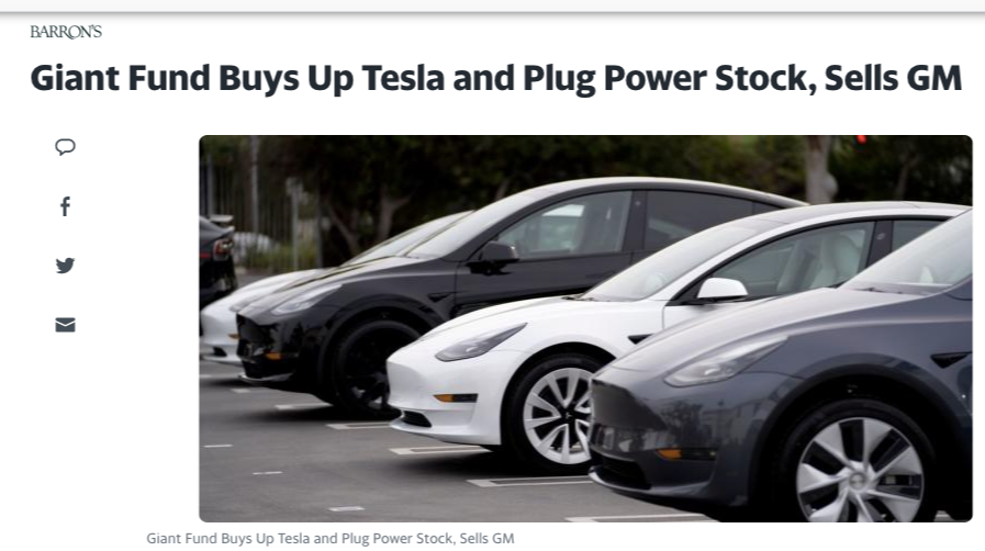 바론스는 거대 펀드가 테슬라와 플러그 파워는 사고 GM은 판다고 했다.