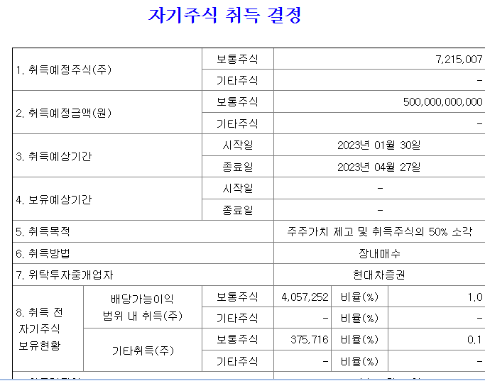 그 매수가 끝나면 자사주를 소작할 것이다.