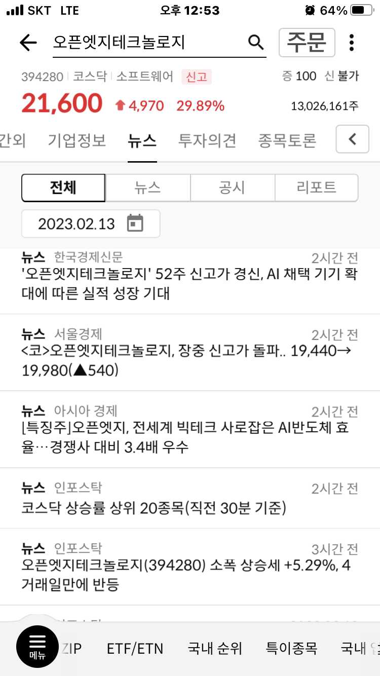 오픈엣지테크놀로지가 오늘도 좋다.