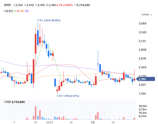 코이즈 주가는 사실상 인물의 움직임에 연연하게 되어 있는 것 같다.