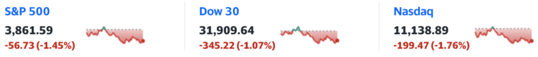 미국 증시가 2일 연속 큰 폭으로 하락했다.