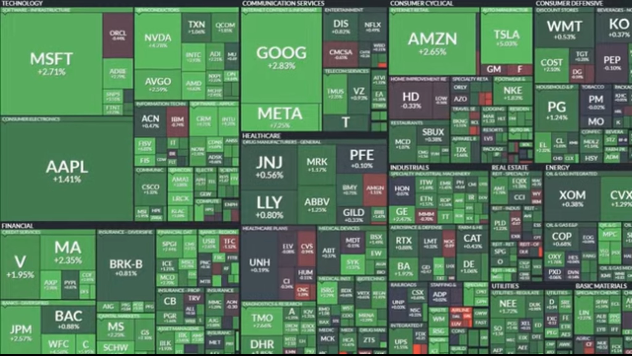 미국 주식에 모처럼 초록불 일색이디.