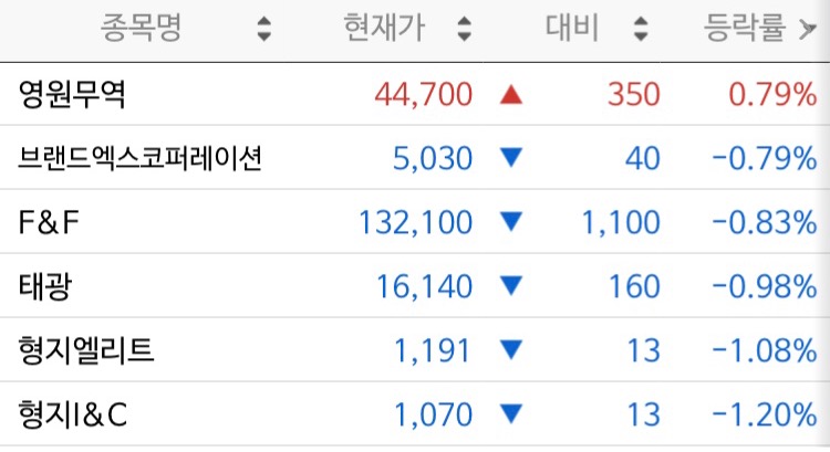 패션 관련주 = 환율 관련주 … 위든 아래든 방향이 없어요.