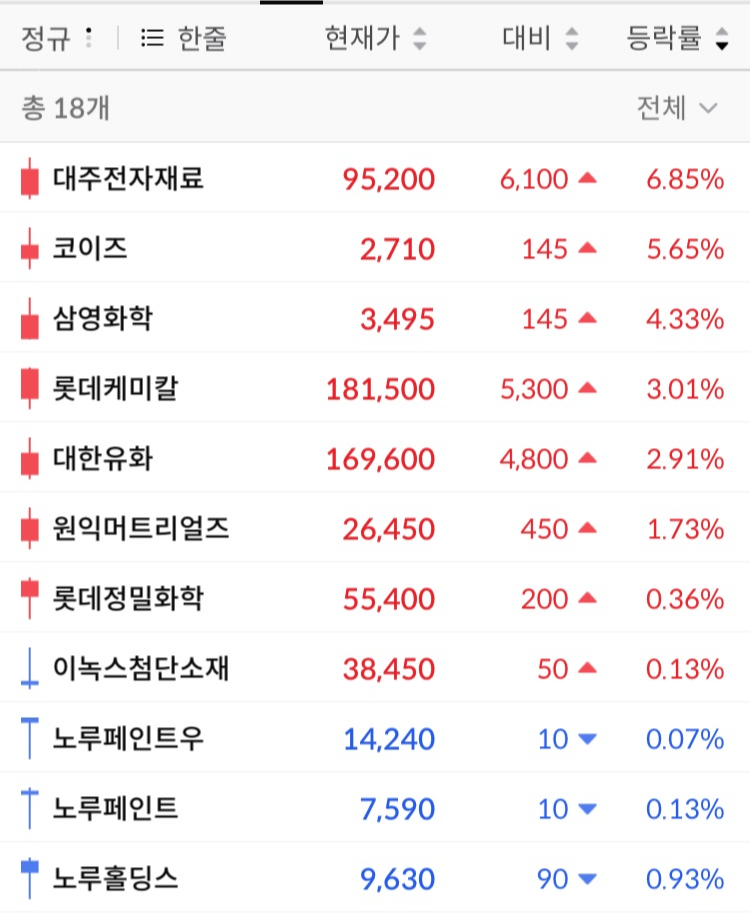 롯데케미칼 등이 많이 올랐다.