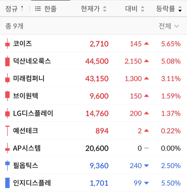 장 막판 좀 흔들렸지만, 그래도 플러스권을 형성했다.