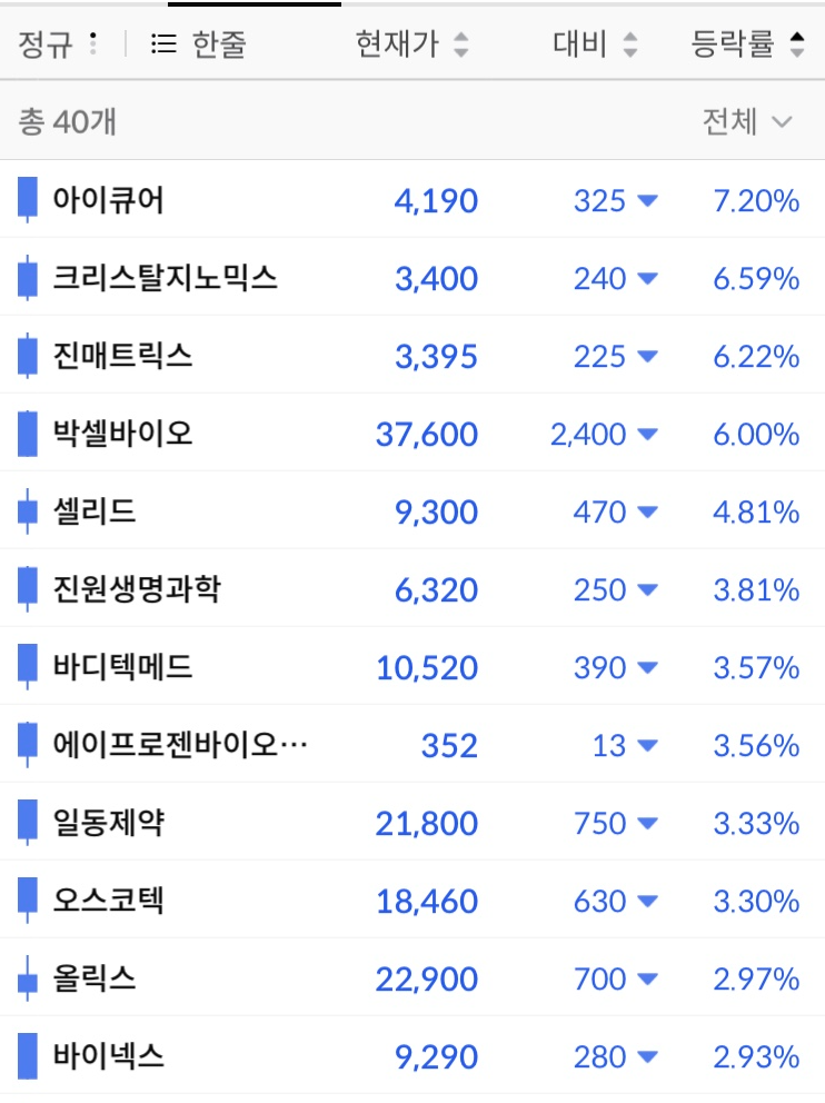 어제 좀 오르던 바이오주가