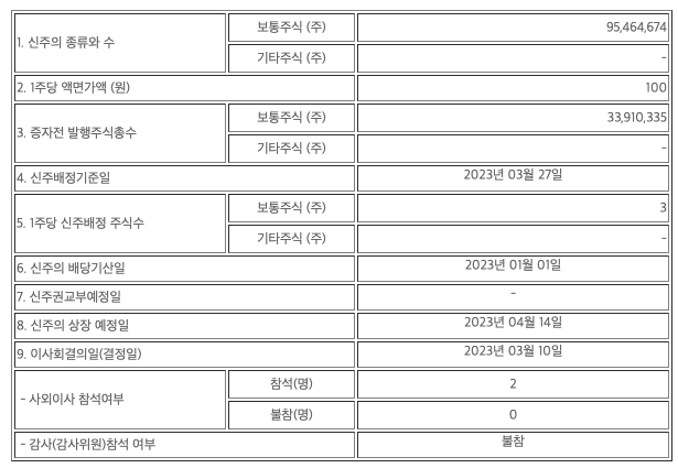 2. 신주의 상장 예정일 : 23년 4월 14일