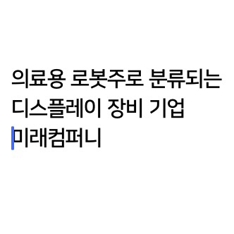 하락장에서 낭중 요추로 뜨는 미래컴퍼니는 의료용 로봇주로 분류되는 디스플레이 장비 기업이다.