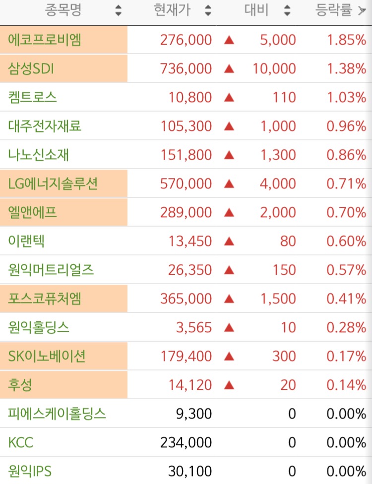 1) 양극재 업체 상승