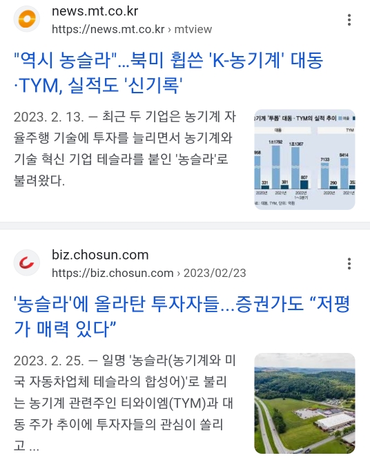 증권가에서 TYM과 대동을 주목하는 이유는 국내 농기계 업체 중 높은 북미 시장 점유율을 차지하고 있다는 점, ‘자율주행 농기계’ 기술을 상용화한 기술 특화 업체들이라는 점에 있다. 대동과 TYM은 국내 농기계 업계 1~2위를 다투는 업체다.