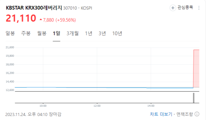 그러나 레버리지 상품의 경우, 손실 위험도 크다는 점에 유의해야 합니다. KBSTAR KRX300레버리지는 KRX300지수가 하락하면 손실도 2배로 커지기 때문입니다.